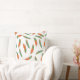 Throw pillow with bright crisp white and colourful orange and green feathers.