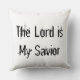 Throw Pillow with Jesus and the words "The Lord is My Saviour" written on back of pillow