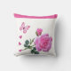 Throw Pillow Pink Rose Floral Butterfly Hearts