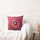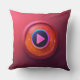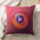 A soft, plush throw pillow featuring a large, colourful play button in the centre. The button is designed to look like a real-life play button on a remote control or media player. The background of the pillow can be a solid colour, a pattern, or a gradient, depending on the desired aesthetic.