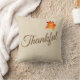 This throw pillow is shown in a natural colour with a Thanksgiving Thankful text print with a pretty fall leaf accent.
