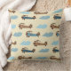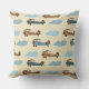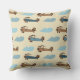 Throw pillow for children's room with cute toy aeroplane in browns and blues.