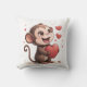 Throw Pillow Valentine's Day Monkey Red Hearts