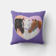 Throw pillow with 3 horses inside a heart on front and back. One side has a background in pink. One side has a background in purple. Art design by Linda Wagner.