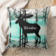 This throw pillow is shown in a pretty forest print with a Yellowstone Moose print design.
