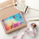 Whimsical ,colourful and vibrant watercolor painting in bright red,pink,fuchsia,yellow,blue.green ,purple colours .2009 . Illustration for an Andersen tale. A little ,tiny child who was born in a flower , who slept in a walnut shell, who rowed about on a tulip leaf ...