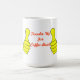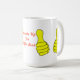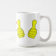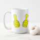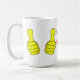 Coffee mug template with illustration of hands with thumbs up on both sides and customisable 'Thumbs Up For Coffee Break" red text