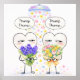 A soft and tender poster featuring two shy heart characters holding bouquets of flowers beneath a gentle shower above.