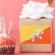 The national flag of Bhutan is symbolic of the Drupka lineage of Tibetan buddhism. It features the country's emblem, the Thunder Dragon. Yellow symbolises the authority of the kind, white represents purity and loyalty, and orange is symbolic of the Drupka monasteries. If you wish to add text to this design, simply select the "customise it" button and add your desired text. You can change fonts and font colours as you like.