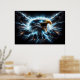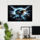 Majestic eagle soars against a dramatic backdrop of lightning strikes.