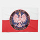 This colourful round design features the Polish Eagle with a gold crown, the coat of arms of Poland on a Texas Flag coloured blue background, surrounded by the words Polish Texan and Thurber.