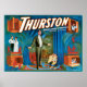 This vintage advertising poster is of Thurston, World's Greatest Magician and is dates 1910. In this brightly coloured poster Howard Thurston is standing in the centre surrounded by scenes of him doing a number of illusions.