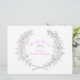 Two sprigs of thyme leaves and flowers forming a herb wreath circle in grey, pink and green floral bridal shower invitation. Edit these invitations with your own name and event words. Sketched art and design by Sarah Trett.