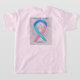 Thyroid Cancer awareness uses a teal, blue, and pink ribbon for its cause awareness. The shirt art features a teal, blue, and pink awareness ribbon angel painting. The awareness angel t-shirt message notes "Thyroid Cancer Awareness". There is a large image on the back of the shirt and a smaller picture on the front of the shirt. The teal, blue and pink awareness angel ribbon art apparel can be customised with personalised messages to make great cause event clothing for fundraiser shirts, group team walk shirts, awareness tshirt gifts, or other special cause events occasions for merchandise to help increase this cause's awareness in public for society's help in creating help & cause change.