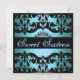Tiara Blue Sweet16 Elegant Damask Birthday Invitation.