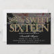 Tiara Floral Black and Gold Sweet 16 Invitation