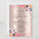 Tiara,Flowers Feather Rose Gold Quinceañera Invitation