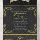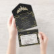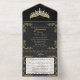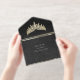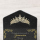 Tiara & Foil Leaf Frame Quinceanera - Black/Gold All In One Invitation