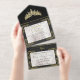 Tiara & Foil Leaf Frame Quinceanera - Pearl/Gold All In One Invitation