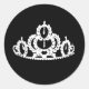 Round sticker shown in black with a litho print of a pageant tiara. Customise this item or buy as is. Add your name.