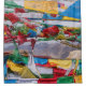 Landscape view from Ganden Buddhist Monastery with prayer flags in foreground - Tibet
