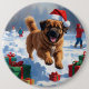 Tibetan Mastiff Running in Snow with Christmas Hat 6 Cm Round Badge