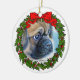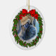 Coloured pencil drawing of a Tibetan Spaniel dog on a Christmas ornament by Glenda S. Harlan.