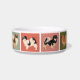 This is a heavy, durable bowl decorated with Tibbies of many colors, the perfect size for hungry/thirsty Tibs. The design is interesting and printing clear.