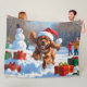 Tibetan Spaniel Running in Snow with Christmas Hat Fleece Blanket