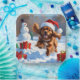 A cheerful Tibetan Spaniel runs playfully through the snowy winter scene, wearing a festive red Christmas hat. This charming design highlights the breed’s silky coat, expressive face, and lively spirit while capturing the warmth and joy of the holiday season. A heartwarming winter moment full of festive cheer.