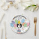 Make your black & white Tibetan Terrier's birthday extra special with our adorable dog-themed design featuring a party hat and balloon. Personalise this fun birthday paper plate with your furry friend's name and age for a truly tail-wagging celebration!
