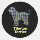 Tibetan Terrier Dog Silhouette Yellow & Black Grid Classic Round Sticker