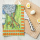 FUN LOVING TURKEY ENJOYING A GAME OF TIC TAC TOE. HOLIDAY KITCHEN TOWEL Pale Green/Orange Border * Customise.... Look For Matching Items Susan Brack Design