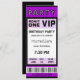Ticket 21st Birthday Party Invitations Purple