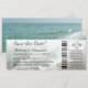 Ticket Invitations, beautiful ocean scene background with ticket style invite. Save the date for your destination wedding, cruise wedding or beach wedding with this unique ticket invitation. Customise online with your info.
