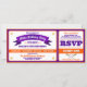 Fun, allstar baseball game ticket style birthday party invitation in your team colours of purple and orange.