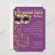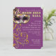 COLOR PALETTE: deep purple, gold metallic look, silver metal look and black DESIGN COLLECTION: A vintage Venetian party mask for a jewelled masquerade ball with elegant, classic scroll swirl flourishes in a faux golden glitter with a twinkling sparkle sets off this ticket style invitation that has been set up with fundraising wording as an option. It is easy to change out for your own wording if needed using the template fields. The reverse side has the damask style swirling pattern.