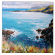 Tidal Dreams and Meadow Breezes. The boundless blue sea and bright, windswept meadows of wild blooms merge in a dance of light and movement, a vision of serenity and untamed beauty. This stylised watercolour brings the wild coastline of Wales to life, where dramatic cliffs embrace the rolling waves of an untamed ocean.