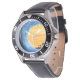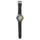 My husband loves the watch, he likes the dial, the graphics, the band, and it keeps perfect time.