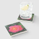 The coasters are gorgeous, a quality feel and heavy weight. They look like a precious archeological find. A rustic stone juxtaposed with a modern floral black and white print. I like the way the print goes slightly imperfect on the cut stone edges giving them a kind-of natural beauty.
