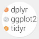 Tidyverse libraries: dplyr, ggplot2, tidyr classic round sticker