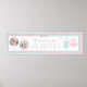Grey and white chevron print with soft blue and pink contrasts; Pink polka-dot tutu jumper and baby blue stripe jumper with tie and 3D-look bow party banner design for a baptism or twins announcement.
