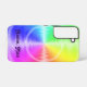 A full-spectrum rainbow tie-dye design featuring a colour wheel-like gradient of all the colours, and faded sharp wavy white lines, both horizontal and vertical (which get larger towards the edges), and circular (in the middle and near the edge). Add your name or initials, or leave blank!