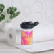 A bold, colourful design with grateful shades of hot pink, orange and aqua blue with a fun colour block to add your name or any text. The crazy tie dye pattern has a variety of colours.