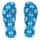 Flip Flops in a digital tie dye pattern in denim inspired shades of indigo, cobalt, and pale ice blue