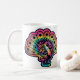This artwork features a peacock in vibrant tie dye colours. The intricate details of the peacock's feathers are highlighted in the tie dye pattern, creating a unique and eye-catching design. The peacock is a symbol of beauty and extravagance, and the tie dye colours add a modern and playful twist to this majestic bird.