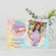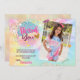 Looking for the perfect and coolest tie dye birthday party thank you card? Get this trendy hand painted tie dye pastel unicorn and rainbow, add your photo