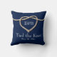 A rustic rope tied in a heart, and the newlyweds initials decorate this pillow on a dark blue background, making it perfect for the sweetheart table or decor at a nautical, or beach wedding. If additional coordinating items are needed for your wedding, just contact us at prettyfancyinvites@gmail.com with your request