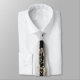An ebony wood clarinet with silver keys, very nearly accurate in size, on a grey background