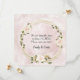 White rope frame with hydrangea flowers and green ivy on soft blush pink watercolor abstract.